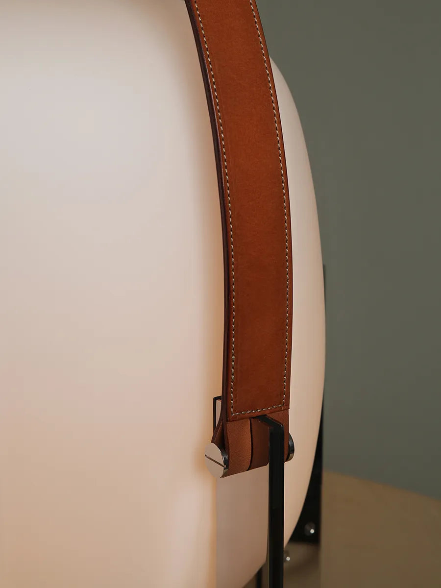 Material: Rostfreies Stahl mit weißem Lampenschirm aus Opalglas. Erhältlich mit oder ohne Ledergriff.