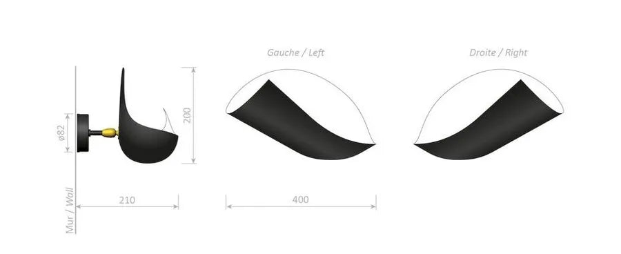 Die kleine Wandleuchte von Editions Serge Mouille passt perfekt als Nachtlampe oder als zusätzliche Beleuchtung im Flur oder Eingangsbereich. Die Lampe wurde 1962 von Serge Mouille entworfen und ist sowohl in der rechten als auch linken Version erhältlich.