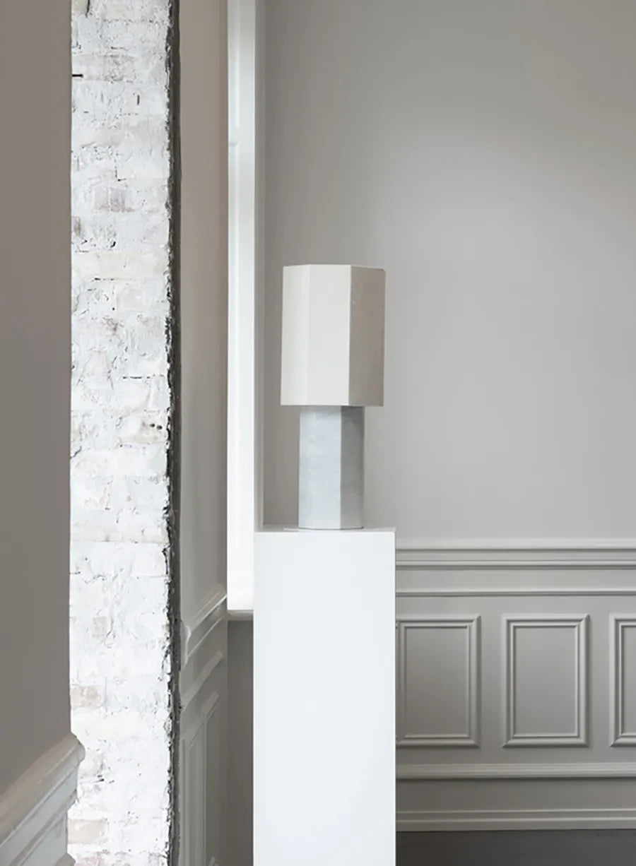 Die The Eight Over Eight Lamp von Louise Roe ist einfach und ästhetisch. Die Tischleuchte spendet mit ihrem Schirm in ruhigen Farben ein fantastisches und sanftes Licht. Der Fuß aus massivem, grauem Marmor bildet einen schönen Kontrast zum klaren Schirm. Verwenden Sie die The Eight Over Eight Lamp auf dem Nachttisch oder als Beleuchtung auf dem Schreibtisch im Büro.