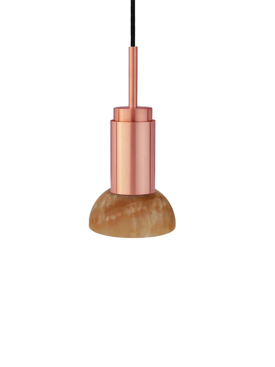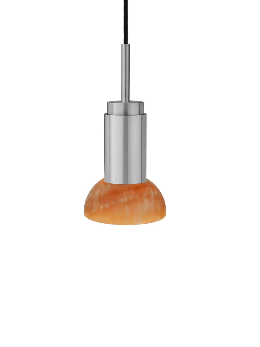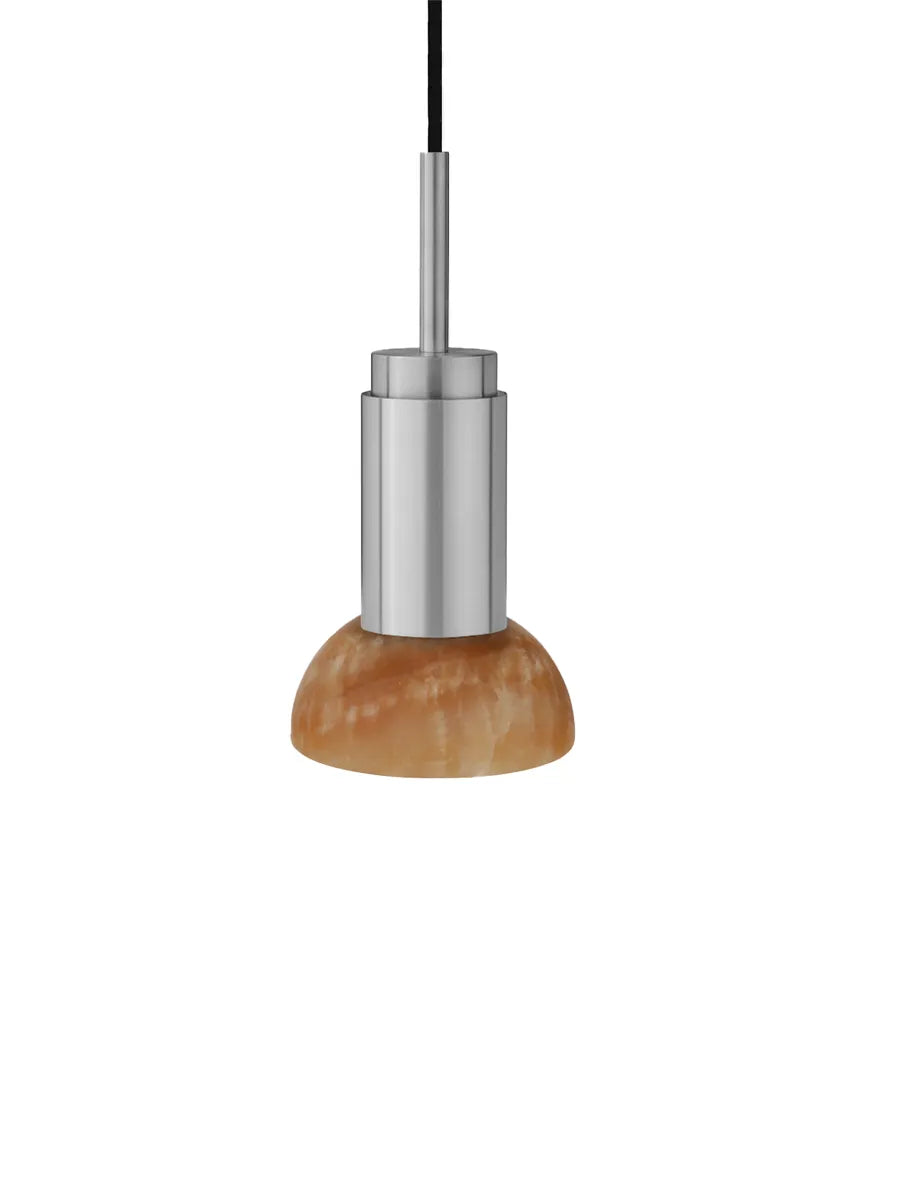 Jetzt ist die Donya Lampe von Anour mit wunderschönen Schirmen aus Stein erhältlich. Der Lampenschirm hier ist in bernsteinfarbenem Onyx und halbmondförmig. Onyx ist ein Naturstein, der voller Harmonie und in herrlichen Farben daherkommt. Der nahezu orangefarbene Schirm zeigt eine an Risse erinnernde Struktur, die ein einzigartiges und diffuses Licht erzeugt. Die Donya Lampe ist ideal für die Nutzung über dem Küchentisch oder kann in mehreren Exemplaren über dem Esstisch aufgehängt werden. Da der Schirm aus Naturstein besteht, wird jede Donya ONYX Moon Lampe ein Unikat sein. Die Lampenfassung der Donya ist in vielen verschiedenen Oberflächen und Materialien erhältlich.