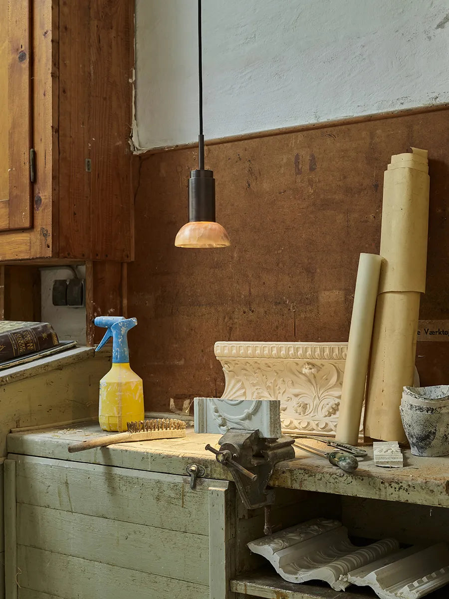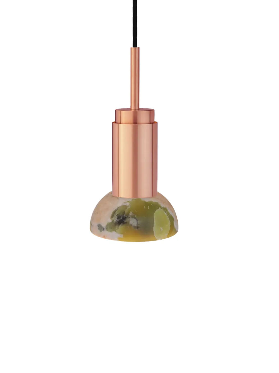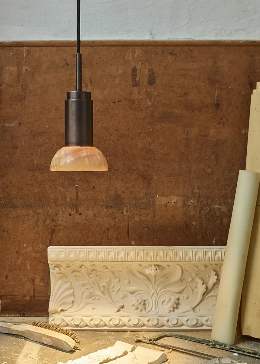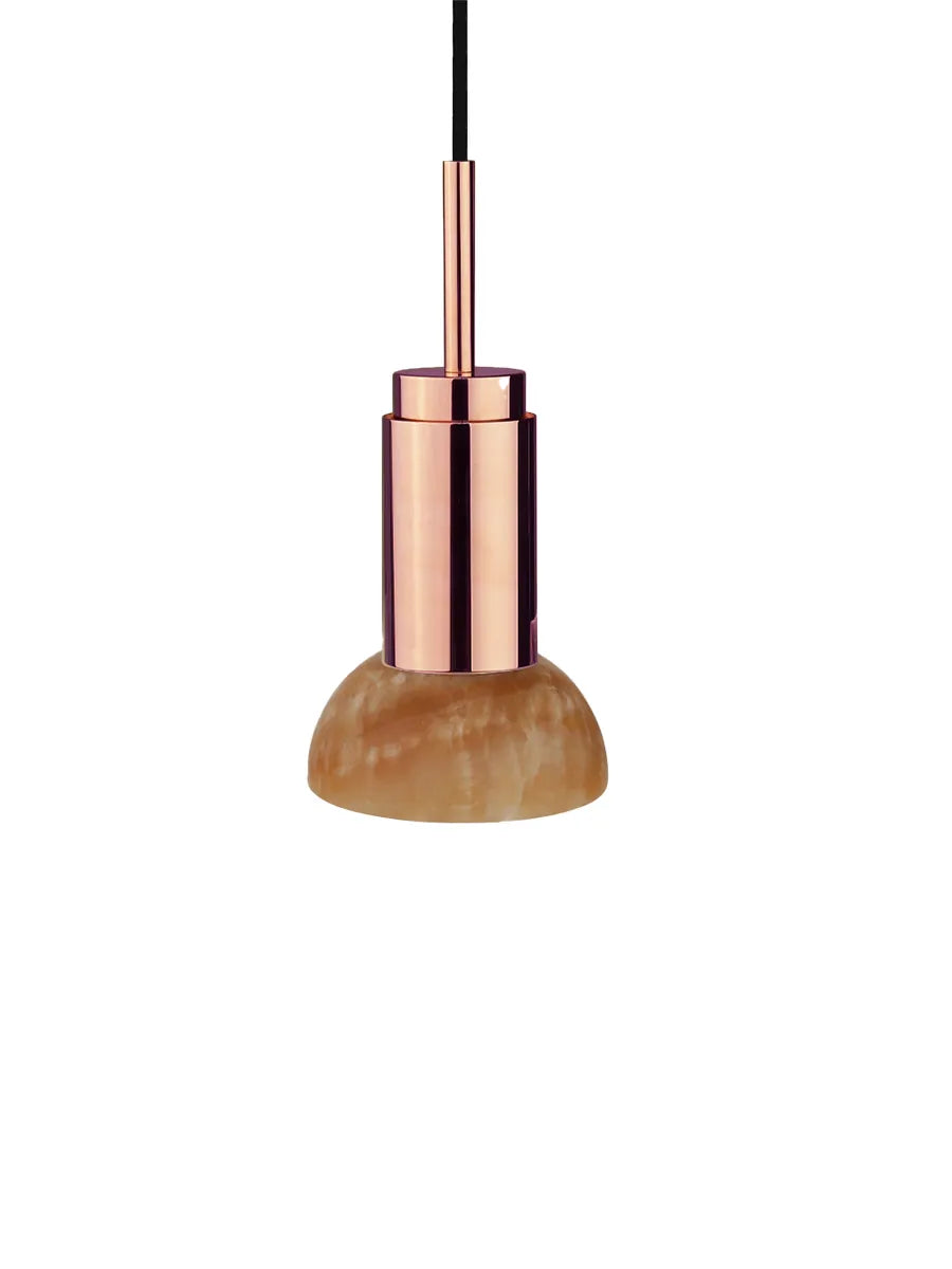 Jetzt ist die Donya Lampe von Anour mit wunderschönen Schirmen aus Stein erhältlich. Der Lampenschirm hier ist in bernsteinfarbenem Onyx und halbmondförmig. Onyx ist ein Naturstein, der voller Harmonie und in herrlichen Farben daherkommt. Der nahezu orangefarbene Schirm zeigt eine an Risse erinnernde Struktur, die ein einzigartiges und diffuses Licht erzeugt. Die Donya Lampe ist ideal für die Nutzung über dem Küchentisch oder kann in mehreren Exemplaren über dem Esstisch aufgehängt werden. Da der Schirm aus Naturstein besteht, wird jede Donya ONYX Moon Lampe ein Unikat sein. Die Lampenfassung der Donya ist in vielen verschiedenen Oberflächen und Materialien erhältlich.