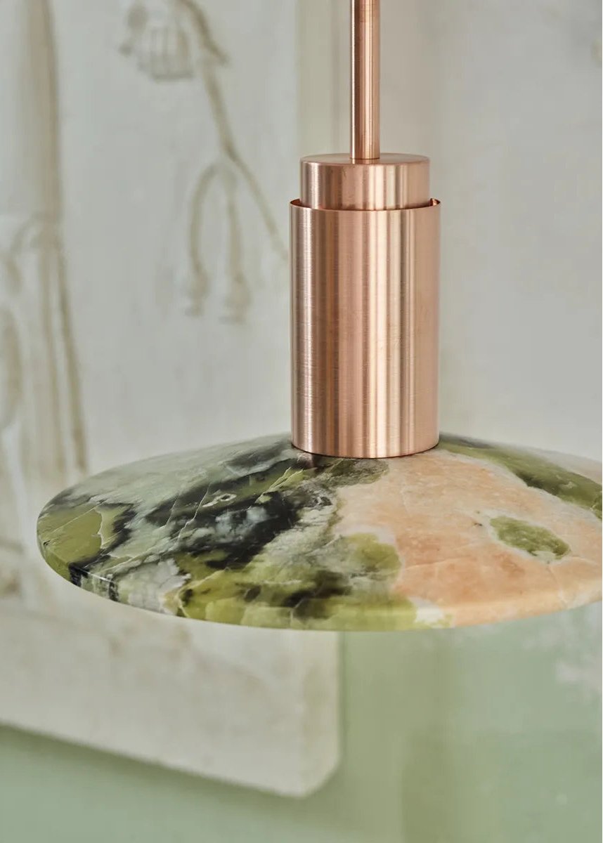 Jetzt gibt es die Donya Lampe von Anour mit wunderschönen Lampenschirmen aus Stein. Der Lampenschirm hier besteht aus gemischtem Onyx, das sowohl rote/orange, weiße als auch grüne Töne enthält. Onyx ist ein Naturstein, voller Harmonie und in herrlichen Farben. Der gemischte Schirm zeigt eine Struktur, die an Risse erinnert und ein angenehmes, diffuses Licht erzeugt. Die Donya Lampe ist ideal für die Verwendung über dem Küchentisch oder kombiniert für den Esstisch. Da der Schirm aus Naturstein besteht, ist jede Donya ONYX Solar Lampe einzigartig und etwas Besonderes. Die Donya Lampenfassung ist in vielen verschiedenen Oberflächen und Materialien erhältlich.