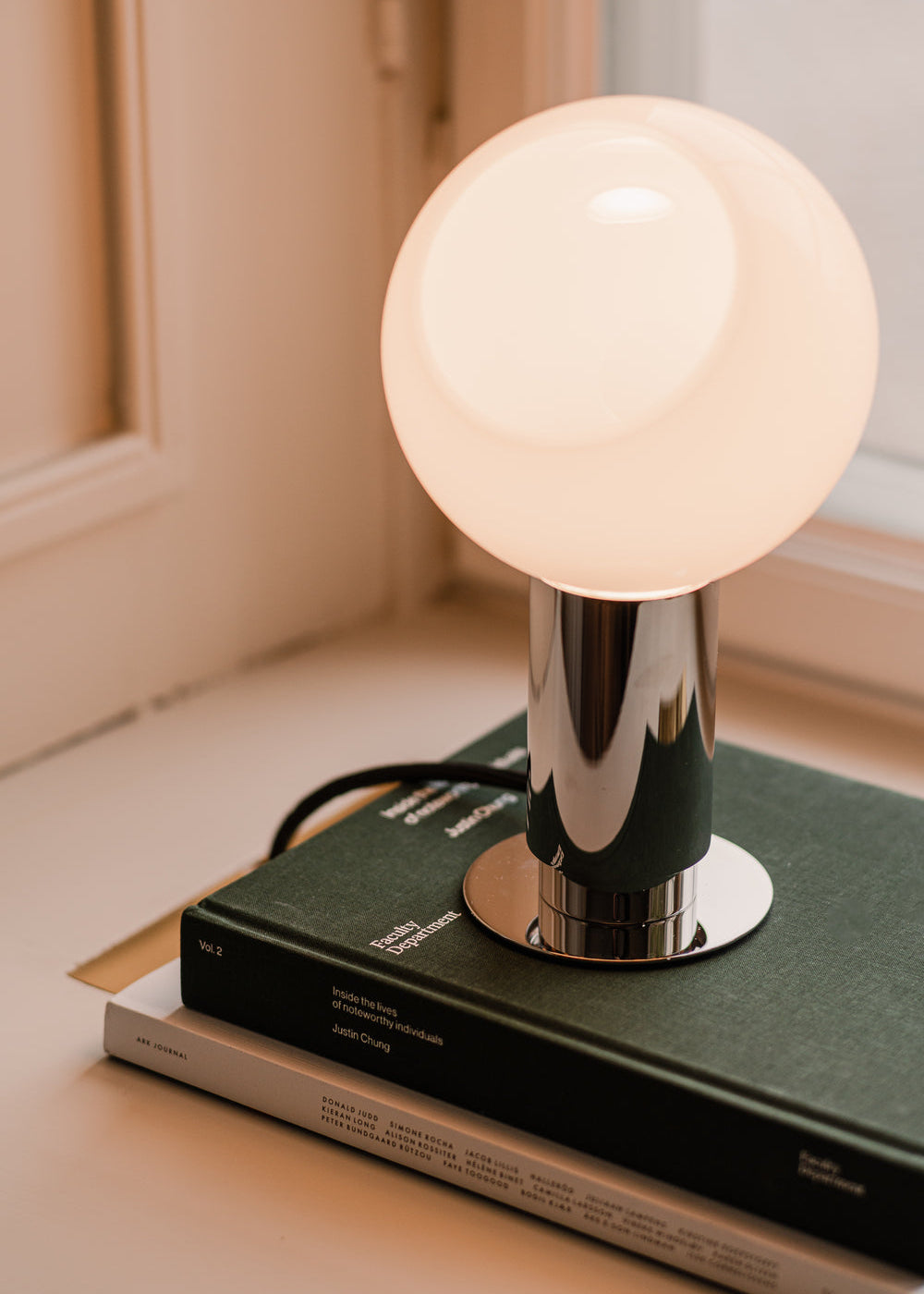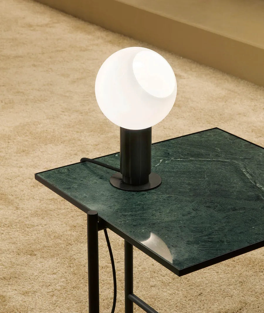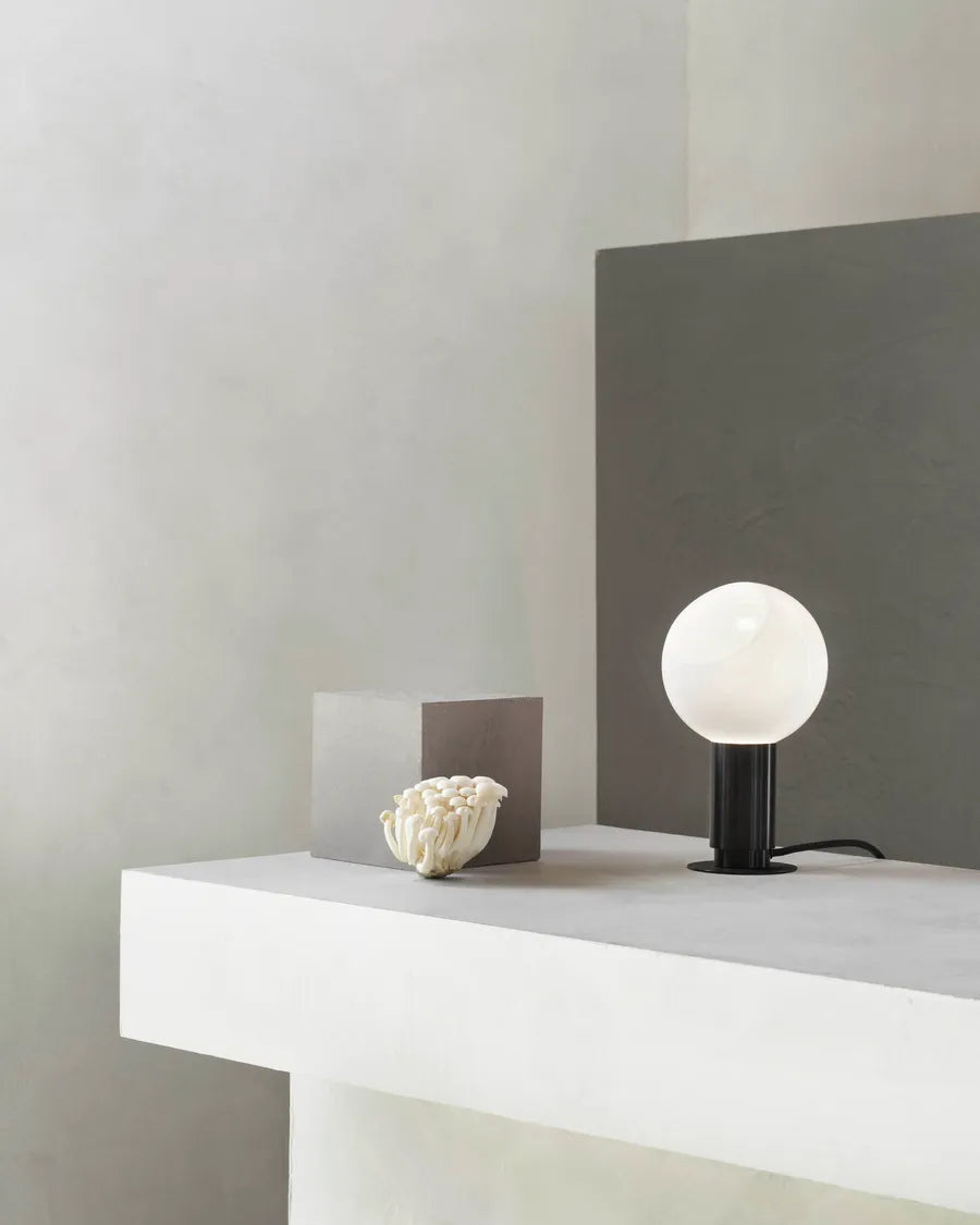 Die Donya Tischleuchte ist Anours neueste Kreation. Die Tischleuchte strahlt ein weiches und angenehmes Licht aus und ist in drei Ausführungen erhältlich: Gold, Noir oder Silver, alle mit einem opalen Glasschirm.