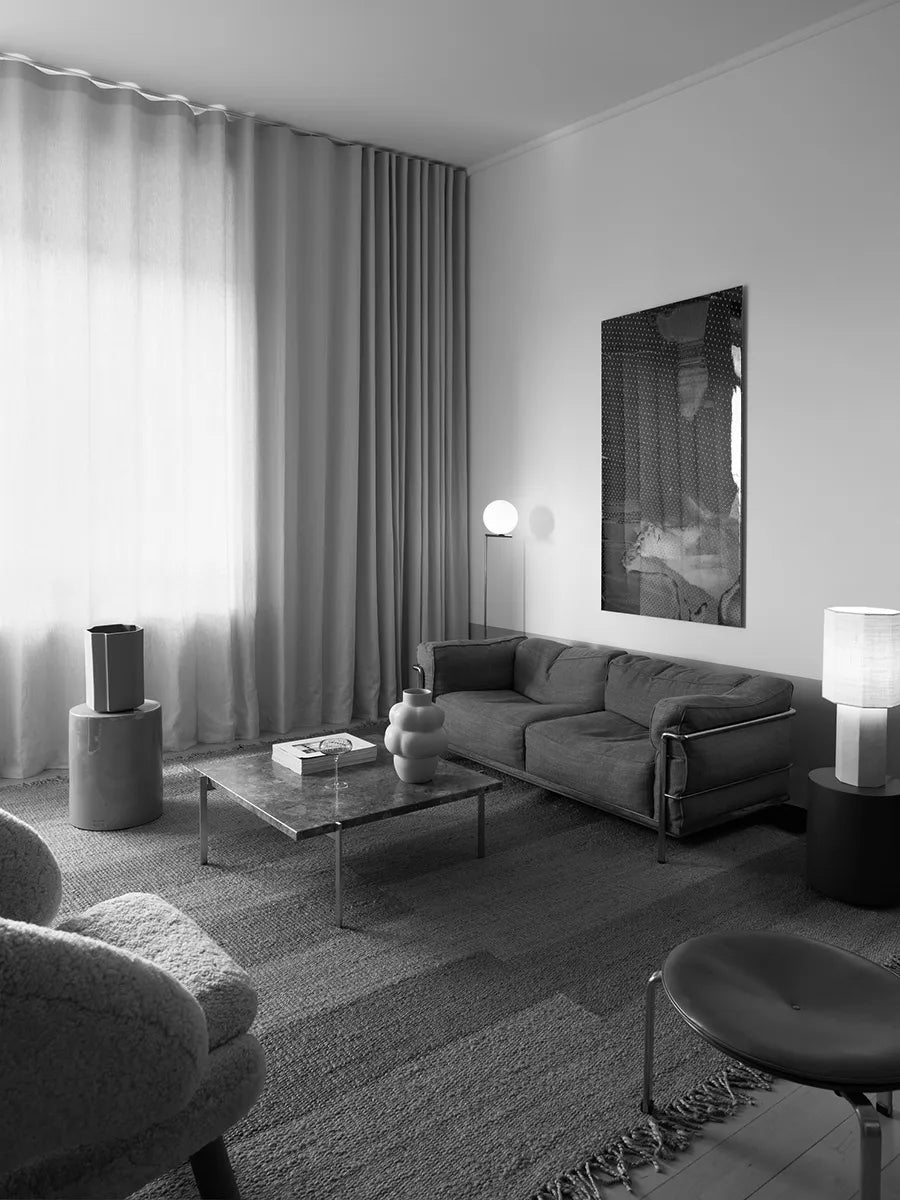 The Eight over Eight Lampe von Louise Roe ist schlicht und ästhetisch. Die Tischleuchte verströmt mit ihrem Schirm in ruhigen Farben ein fantastisches und sanftes Licht. Der Fuß der Tischleuchte ist aus massivem Travertin gefertigt, was einen schönen Kontrast zum klaren Schirm bietet. Verwenden Sie die The Eight over Eight Lampe auf dem Nachttisch oder als Beleuchtung auf dem Schreibtisch im Büro. Die Tischleuchte ist in zwei Größen erhältlich, wobei dies die größere Variante ist.
