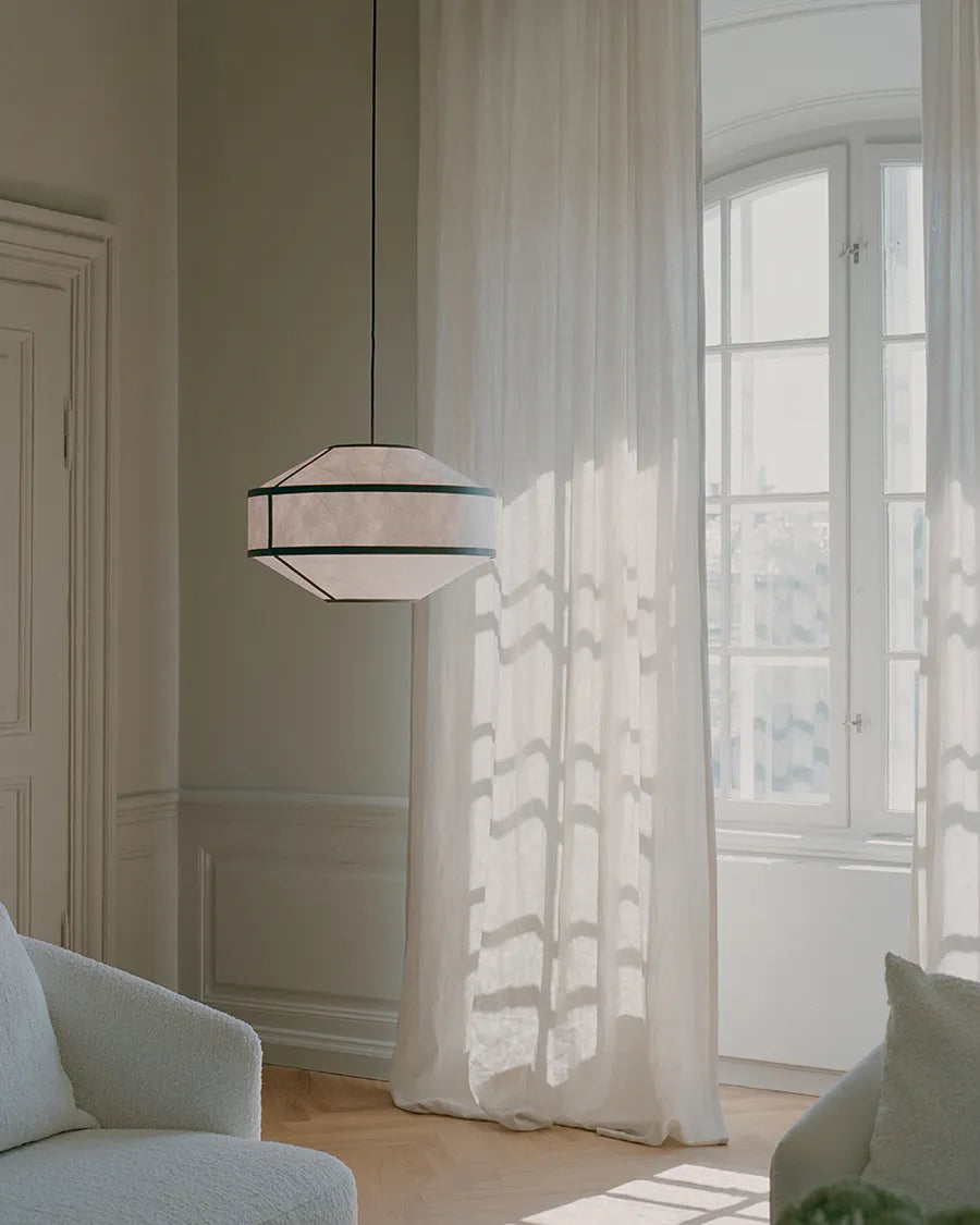 Dekorative Lampe von New Works mit einem Lampenschirm aus papierähnlichem Material. Der Kite Lampenschirm besteht aus Tyvek-Papier, das auf Polyethylenark geklebt ist, um Stabilität zu gewährleisten. Die Kite Pendelleuchte ist in einer Schwarz/Weiß-Variante oder komplett in Weiß erhältlich. Die Kite Lampe gibt es zudem in verschiedenen Formen, sodass sich mehrere Lampen sehr gut miteinander kombinieren lassen. Die Kite Pendelleuchte spendet ein angenehmes, weiches Licht, das als besonders behaglich empfunden wird. Nutzen Sie die Pendelleuchte über dem Esstisch oder in einer Ecke des Wohnzimmers.
