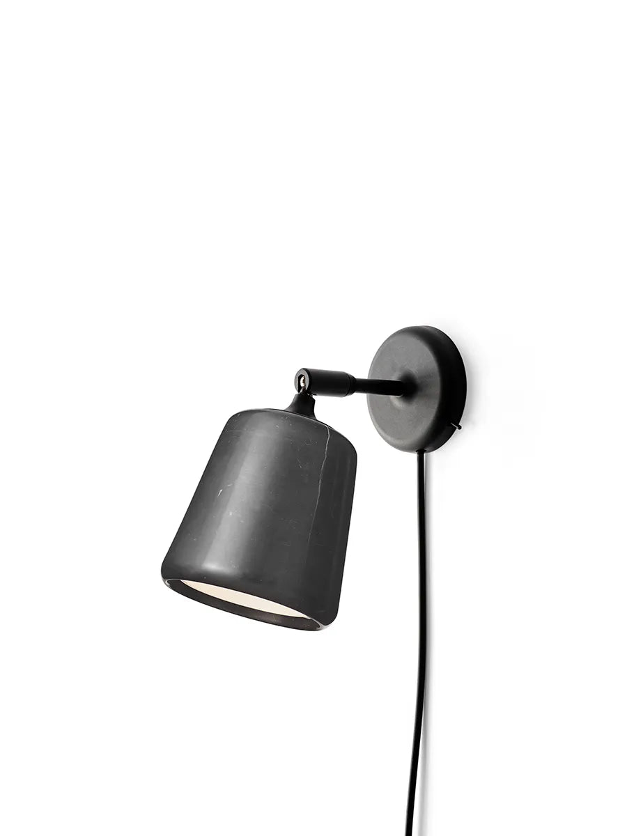 Die Wandleuchte Material von New Works ist eine von mehreren Lampen in der Serie 'Material'. Alle Lampen der Serie verfügen über Lampenschirme aus Naturmaterialien, jedoch in verschiedener Ausführung. Sie können zwischen Holz, Marmor, Beton, Kork oder Stahl wählen. Nutzen Sie die Lampe über einem Gemälde, als Leuchte über der Küchenarbeitsplatte oder als Nachtlicht neben dem Bett. Die Lampe hängt an einer schlichten schwarzen Fassung, die mit einer Leitung und einem Schalter ausgestattet ist.