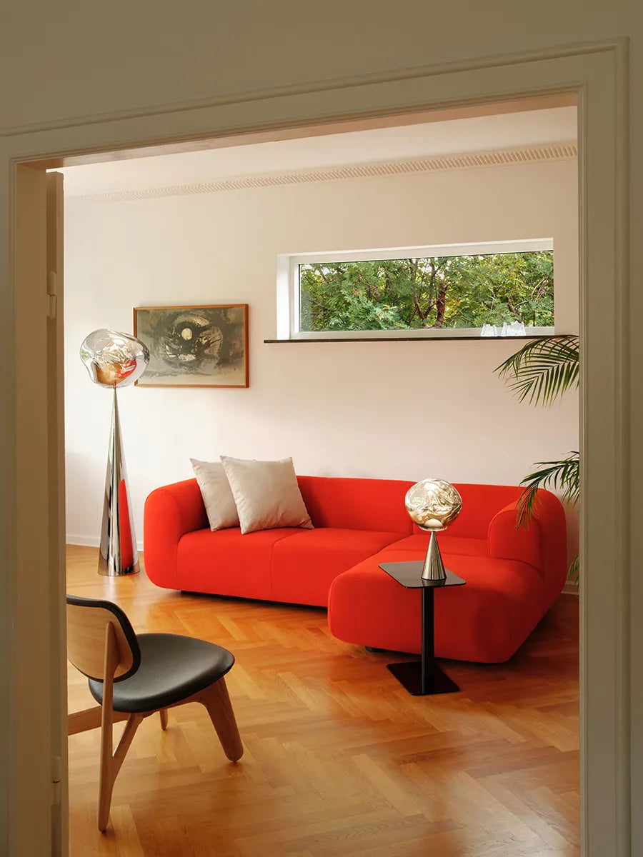 Die Melt Cone Fat Stehleuchte von Tom Dixon ist eine Lichtskulptur, die Tiefe und Vielfalt in Ihr Zuhause bringt. Tom Dixons Melt Lampe wird durch ein Verfahren namens Vacuum-Metallisierung hergestellt. Diese Technik verleiht der Lampe ihr einzigartiges und dynamisches Aussehen, das sich je nach Schaltung verändert. Im ausgeschalteten Zustand ist die Oberfläche spiegelblank, während sie im eingeschalteten Zustand wie eine geschmolzene Feuerkugel erscheint. Die Melt Cone Fat Stehleuchte ist sowohl mit einem Schirm in Silber als auch in Opal erhältlich.