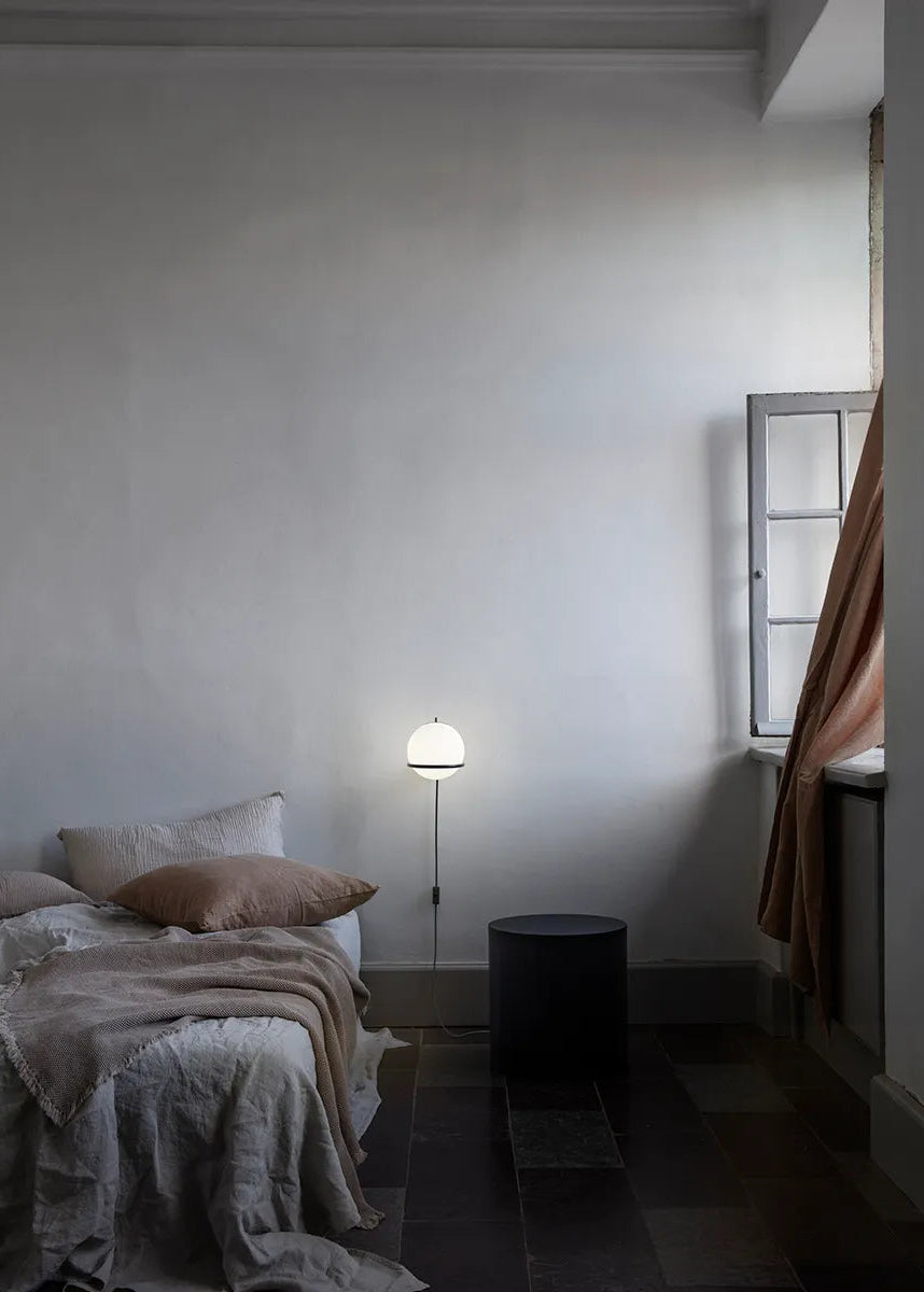 Model 237 kombiniert Einfachheit mit zeitloser Eleganz. Die runde Opalglaskugel ruht auf einem schwarzen oder champagnerfarbenen Stahlring und erzeugt ein herrlich sanftes Licht. Die Wandleuchte Model 237/1 wurde 1959 von Gino Sarfatti entworfen, einem der ganz großen und angesehenen Designer Italiens. Diese Wandleuchte besitzt eine Opalkugel mit einem Durchmesser von 14 cm. Ideal für lange Flure oder als Nachttischlampe am Bett.
