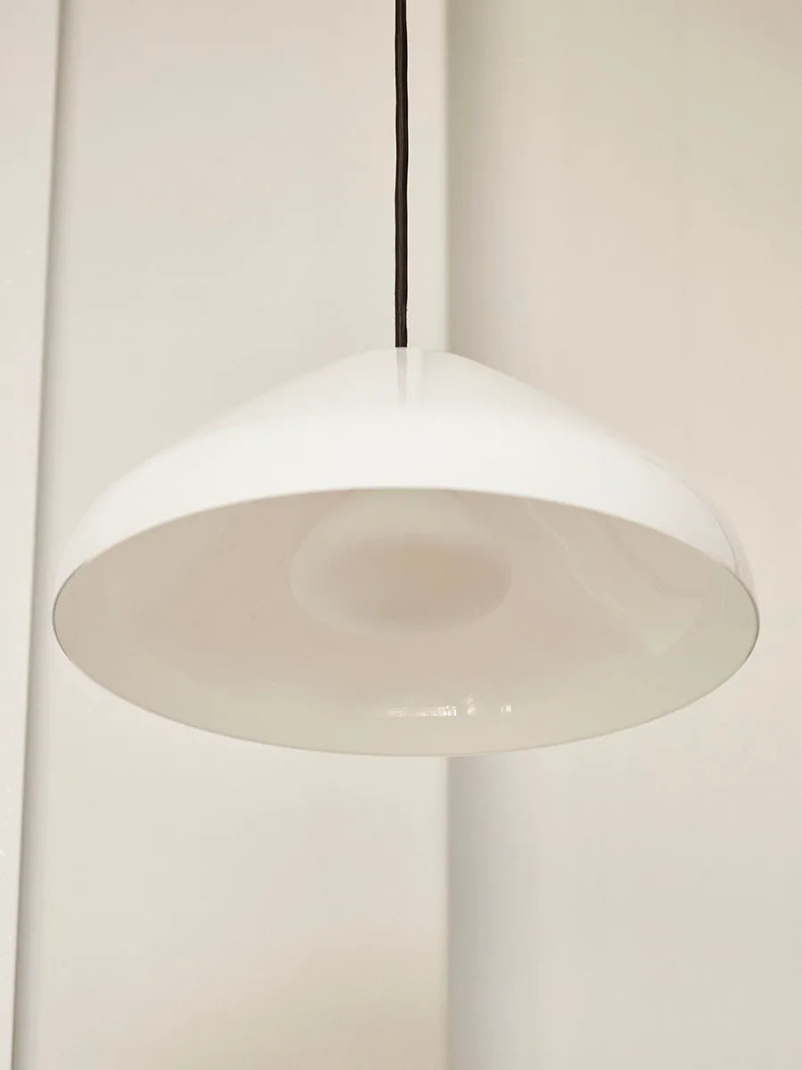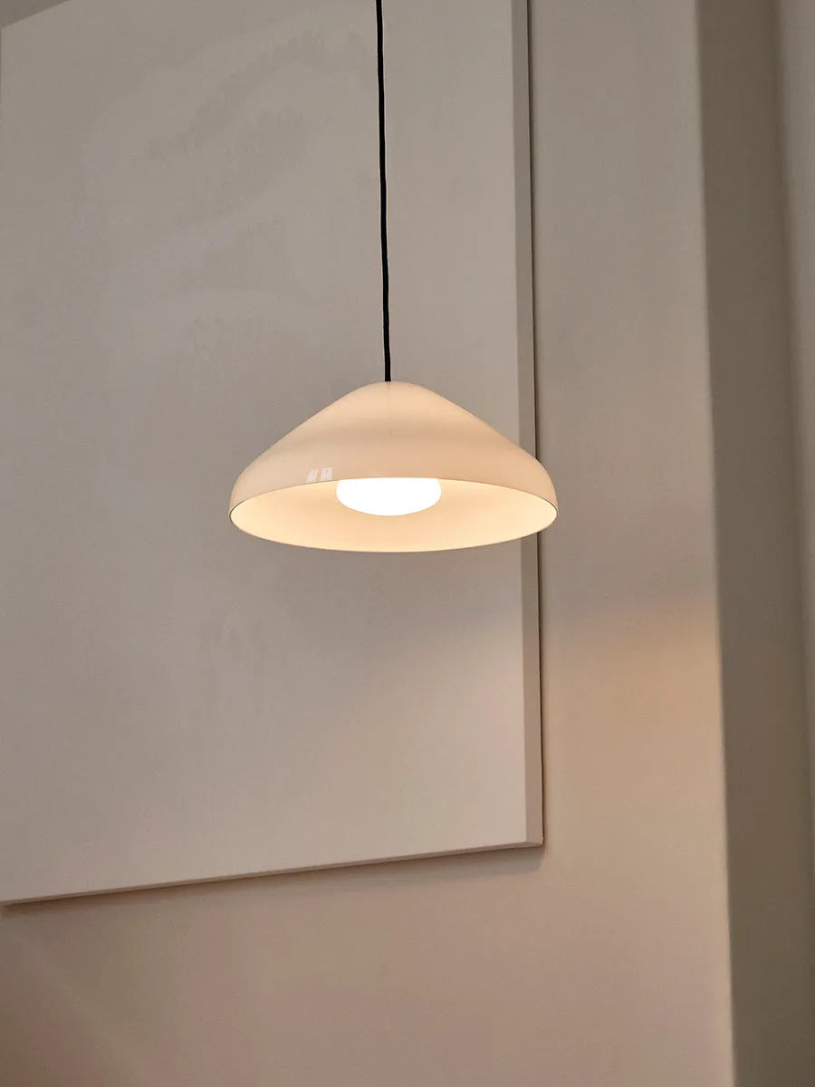 Die Pao 470 Pendelleuchte von HAY wurde vom japanischen Designer Naoto Fukasawa entworfen und ist in mehreren verschiedenen Farben erhältlich. Die Lampe hat eine passende Größe, um über dem Esstisch in der Küche oder im Esszimmer zu hängen.