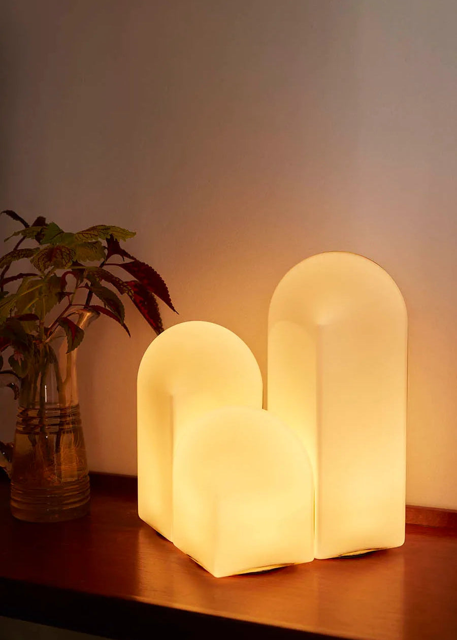 Die dänischen Designer Viola Heyn-Johnsen und Jonas Trampedach haben gemeinsam mit HAY diese Lampe kreiert. Inspiriert von dem Wunsch, eine Lichtquelle mit skulpturaler Qualität zu schaffen. Die Parade Tischlampe 160 besteht aus einer quadratischen Basis und einem gewölbten Oberteil aus farbigem Glas. Die Lampe ist in zwei weiteren Größen erhältlich und ergänzt sich hierbei in Höhe, Ton und Temperatur, wenn sie zusammengesetzt werden. Die maßgeschneiderte, integrierte LED-Lichtquelle, die bei Bedarf ausgetauscht werden kann, verfügt über einen Inline-Dimmer, der es ermöglicht, die Lichtstärke für verschiedene Einstellungen anzupassen.
