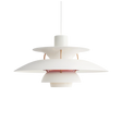 Die moderne weiße Oberfläche schafft eine leichte und klare Optik, die elegant mit Holz, Stein, Stahl und Textilien harmoniert. Zugleich ist die PH 5 für ihr besonderes Lichterlebnis bekannt: Das reflektierende Dreischirmsystem leitet den Großteil des Lichts nach unten, sendet aber auch ein sanftes Seitenlicht in den Raum, sodass die Leuchte selbst warm und einladend glüht. Die mattierte Glasabdeckung am Boden sorgt dafür, dass das nach unten gerichtete Licht angenehm und ohne harte Schatten wahrgenommen wird.