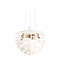 Diese Variante ist in der eleganten Farbe Soft White erhältlich – ein sanfter, zurückhaltender Weißton mit halbglänzender Oberfläche, die matter ist als die klassische weiße Version. Das metallisierte Messinggestell (PVD-beschichtet) bewahrt seinen Glanz und patiniert im Laufe der Zeit nicht, was für eine dauerhaft schöne Optik sorgt. Die Kombination aus Soft White und Messing verleiht Wärme und zeitlose Eleganz, wodurch diese Ausführung der PH Artichoke ideal sowohl für moderne als auch klassische Einrichtungen ist.