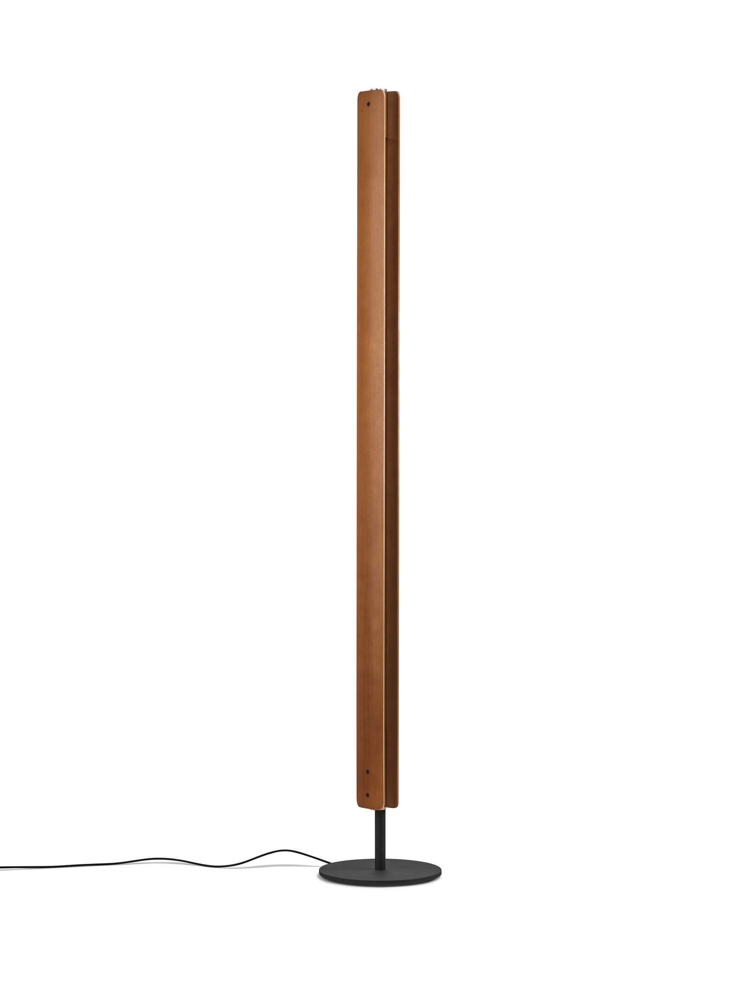 Seki-Han ist Tobia Scarpas poetische Stehleuchte von 1963 – von Flos mit Respekt vor dem Original neu aufgelegt. Zwei rotierende Holzelemente aus wärmebehandelter Esche umschließen ein zentrales LED-Rohr und ermöglichen es Ihnen, das Licht zu öffnen oder zu schließen, von sanfter Wandbeleuchtung bis zu offenerer Stimmungsbeleuchtung. Die Verbindung von massivem Holz, verchromten Endstücken und einem stabilen, mattschwarzen Fuß verleiht der Lampe eine skulpturale Note, auch wenn sie ausgeschaltet ist. Die integrierte LED (2700K, Ra90) liefert 2000 Lumen und lässt sich elegant über einen Fußdimmer am Kabel regulieren. Jedes Stück Holz wird in Norditalien CNC-gefräst und wärmebehandelt, um Stabilität zu gewährleisten – eine zeitlose Ikone, die modernen Einrichtungen Wärme, Taktilität und Ruhe verleiht.