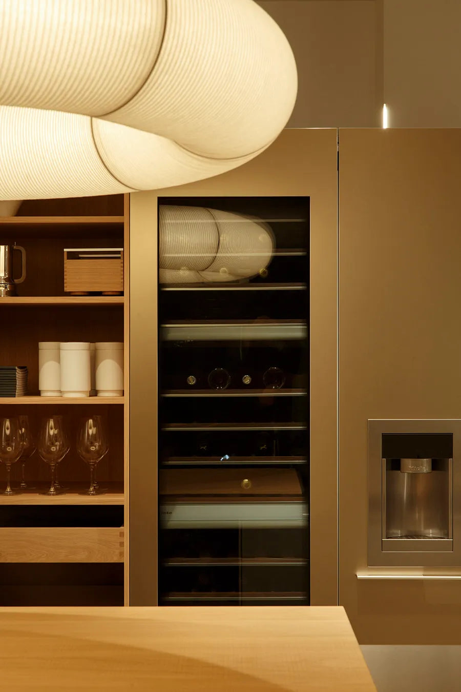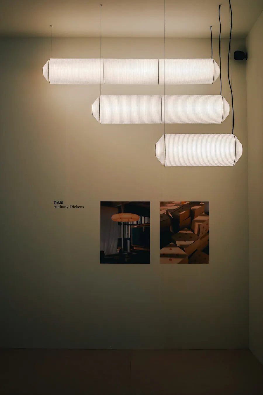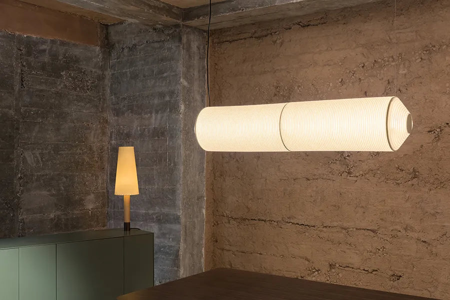 Die Tekiò-Leuchte ist hier in einer vertikalen Ausführung dargestellt, sie ist jedoch auch in einer horizontalen Ausführung und einer runden Ausführung erhältlich.